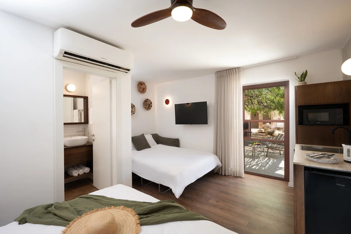 🏡 אירוח כפרי יהל – מעיין במדבר🛏️ חדרים זוגיים או חדרים ל־3 (מיטות נפרדות + מיטה מתקפלת)🧴 מקלחת, שירותים, מזגן, טלוויזיה, פינת קפה, מצעים ומגבות🍽️ חצי פנסיון בשישי+ כריכים לרכיבות (לא כולל א. ערב בחמישי - נצא לאכול בפודטרק)